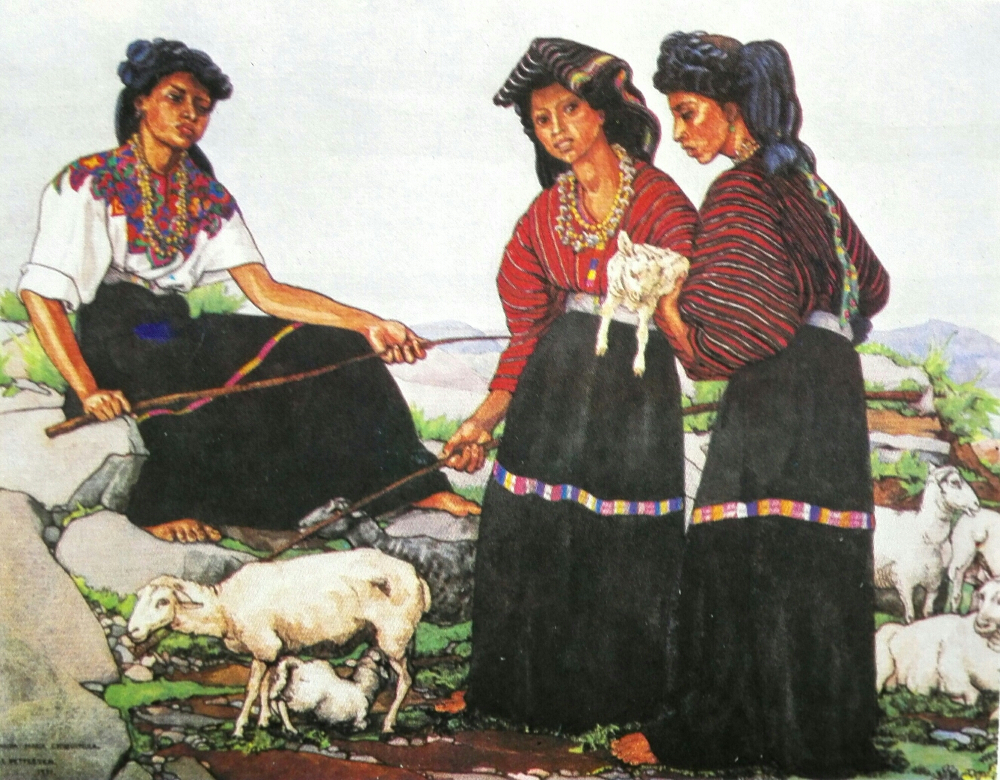 Las mujeres de éste sitio, tienen un traje muy similar al de Patzité, Quiché, visten pesadas morgas (faldas) azul oscuro de algodón, a la que bordan una randa ( costura de unión decorativa), igual a la del huipil de diario. El pelo lo arreglan con un tocado de lana trenzada, que remata en dos grandes borlas.