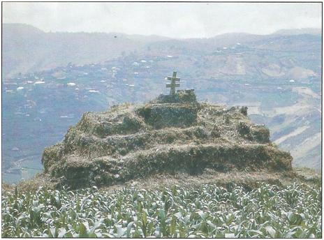 Cruz sobre una pirámide del Posclásico. Altos Cuchumatanes, Guatemala. Foto de Carlos Navarrete.