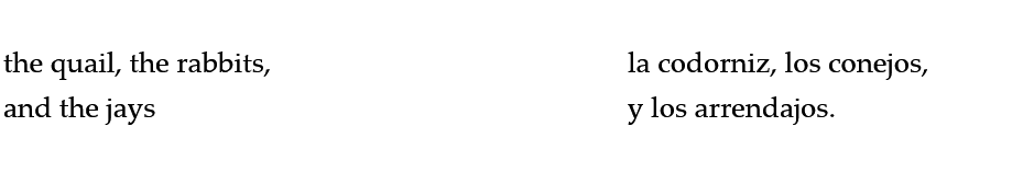 El siguiente ejemplo es un terceto moderno con un acortamiento de la tercera línea (B. Tedlock 1978:241-42):